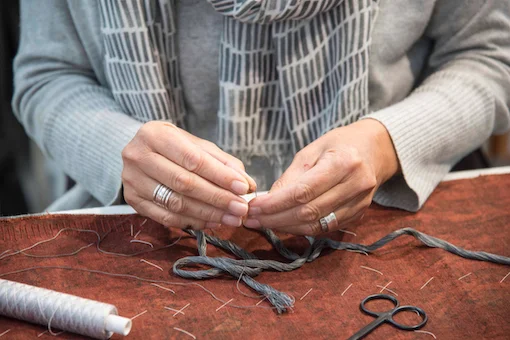 As a result, my studio work has a cyclical quality to it; periods of physical activity and periods of more restful activity, although I’m mindful that stitching equals sitting, which isn’t great for the body. My solution is to stand and walk about every time I have to re-thread the needle - and/or stitch standing up - and make sure I get outside for a walk – regardless of the weather.