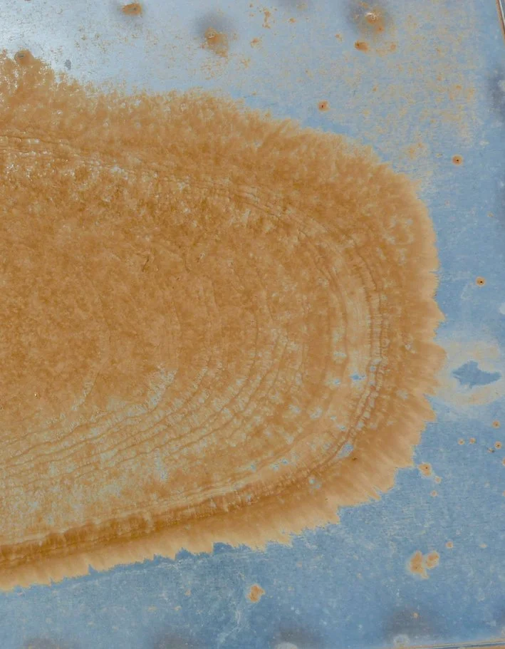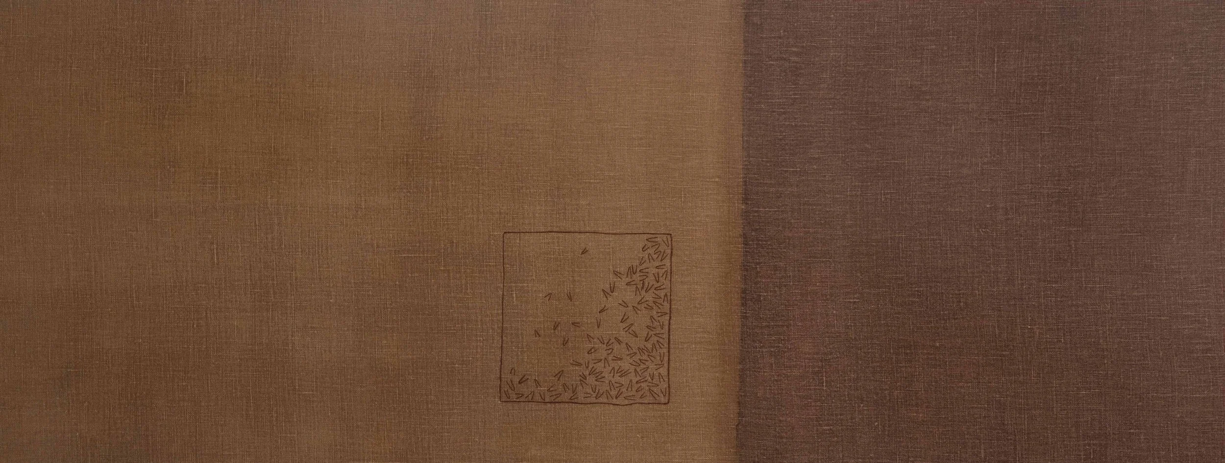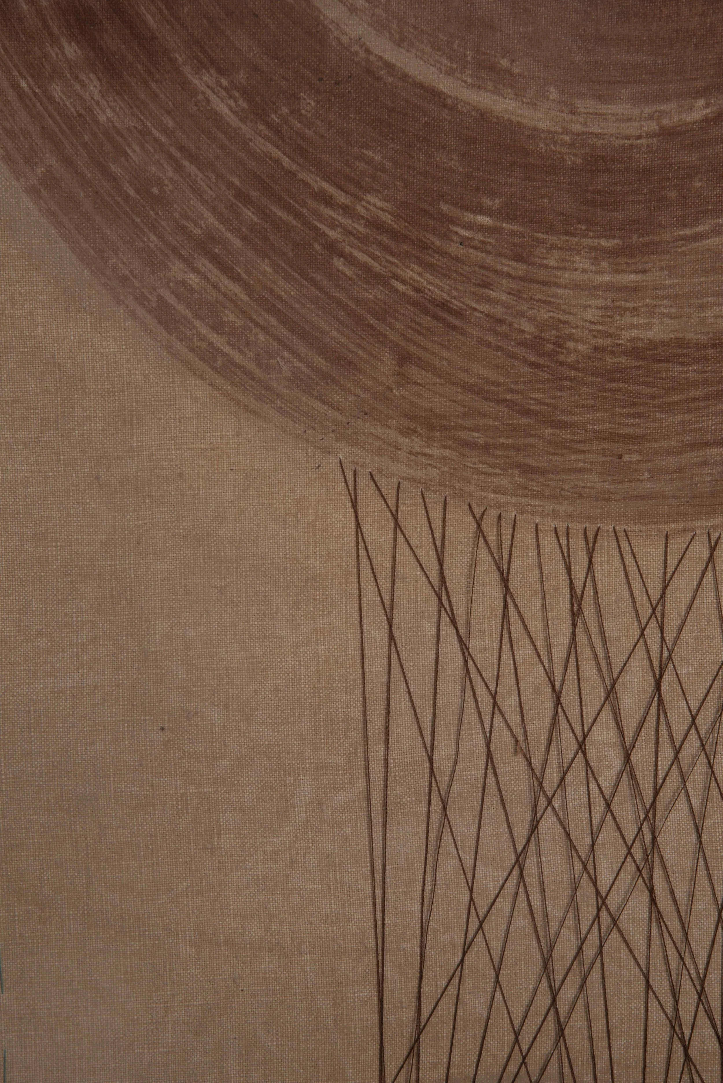 Although I couldn’t work directly on the soil, I was able to work outside on the two or three sunny days we did get. My studio had a concrete slab outside that offered line and texture, as did a weathered table made from plywood. Sand deposits connected the Sahara to Los Gázquez and I worked with it in situ, laying down soya-soaked linen directly on to the dried-out pigment, using a large paintbrush to pick up more colour and scrub it in.