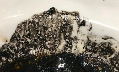 As soon as the rain took a break we went out with a bucket, tubs and trowels and got pretty dirty messing about in the clay. My studio had a small wood-burner and using tin foil (and latterly, pizza tins) as a base, I dried and ground these soft colours, using them to complement the pigments I’d brought with me.